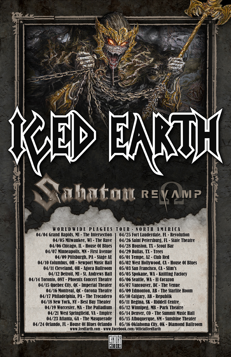 Heavy metal legends ICED EARTH will be kicking off their North American trek this week with SABATON and REVAMP! See below for all upcoming dates.