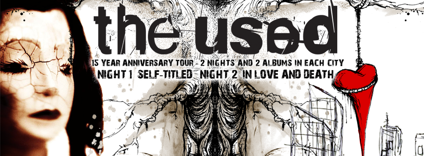 After 31 sold out shows on their first run, The Used will be hitting the road again for a second leg of their fifteen-year anniversary tour. Due to high demand and the success of the initial tour, the band will once again be playing two shows per city, performing Self-Titled and In Love and Death in their entirety, plus more each evening. The second part of the tour will kick off on August 16th in Portland, OR and wrap on September 28th in Atlanta, GA.
