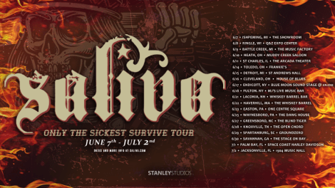 Catch SALIVA’s electrifying, unstoppable live show this summer as they prove Only The Sickest Survive. You can find all of their current show dates @saliva on Facebook, instagram and Bandsintown and their website www.saliva.com . VIP options are available for this tour and on sale through