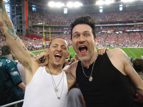 NFL Game Ryan Shuck: Chester took me to the NFL playoff games in PHX a few years ago as a little BFF hangout. We sat in the crowd just like everyone else. No rockstar attitudes. No special treatment. So fun. Chester NEVER acted like a rockstar. We screamed for PHX the entire game. Only one of us lost they’re voice.