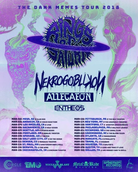 Allegaeon will be back on the road this March with Rings of Saturn, Nekrogoblikon, and Entheos for “The Dank Memes Tour 2018.” This will be the last chance for fans to see Allegaeon before they hit the studio in Denver, CO with producer Dave Otero. Album number five is nearly completely written, and the band plans to unveil a new song as part of their set on tour. Track the band and buy tickets at bandsintown.com/allegaeon