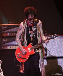 Regular singers on and off the tour included; Bernard Fowler, Joe Sumner, Mr.Hudson, Corey Glover and Sass Jordan. Fowler has been a backup singer on a seemingly endless list of classic rock albums. Sumner is the singing prodigy of Sting. Mr. Hudson, a British musician from Birmingham, England, is a well known contemporary vocalist Sass Jordan, a British-born Canadian rock singer from Montreal, was the sole female lead singer to appear at the Wiltern show. Corey Glover from In Living Colour has also been a regular on tour. If there wasn’t already enough vocal talent on the bill, there were two surprise guest singers for the evening. Perry Farrell, lead singer of Janes Addiction, made an inspiring appearance. Also, Fantastic Negrito, an African-American singer-songwriter whose music includes blues, R&B, and roots music was a surprise guest.