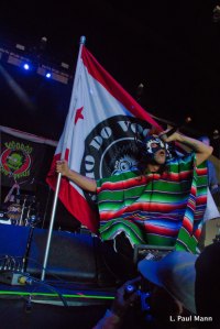 Another local Southern California band from nearby Long Beach, TSOL was the next band to take the stage. The band which initially formed back in 1978, in the infancy of the California punk rock scene, features two original members, lead singer Jack Grisham, and guitarist Ron Emory. Along with early band member, keyboardist Greg Kuehn, these elder statesmen of punk led the group some classic punk tunes, much to the delight of a moshing crowd of enthusiastic fans. Grisham glided about the stage menacingly thrusting his large frame at his fellow band members while they played their instruments furiously. The band played classic old punk tunes from their repertoire including “Code Blue,” as well as newer songs.