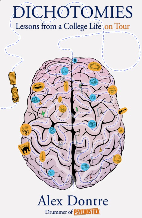 ALEX DONTRE, drummer for acclaimed comedy-metal band PSYCHOSTICK, reveals all in his new autobiography, Dichotomies: Lessons from a College Life on Tour. A must read for any musician and / or college student, Dichotomies tells the unique story of the drummer’s simultaneous musical and academic achievements through the artist’s unique mix of humor and self-perception.