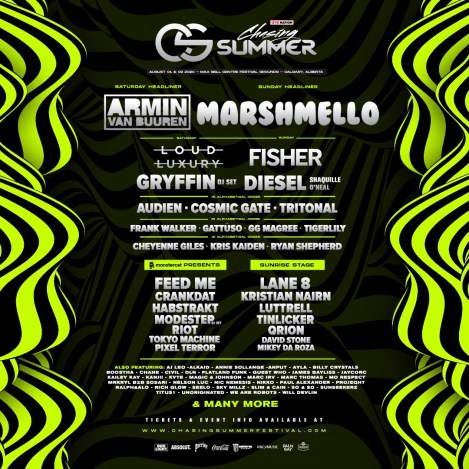 Chasing Summer is excited to announce its highly anticipated 2020 lineup, with headlining performances by Armin van Buuren and Marshmello on August 1 and 2 at Max Bell Centre Festival Grounds in Calgary, AB. Western Canada’s largest dance music festival will feature over 40 acts – including Loud Luxury, Gryffin, Fisher, Diesel (aka Shaquille O’Neal) and more – across three stages. Full line-up and festival details below.